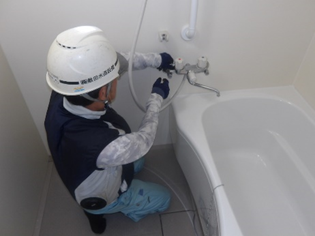 本日午前の作業は、市営住宅の衛生器具(蛇口など)の取替です。