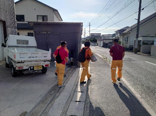 安全ミーティングを行い、必要な材料や道具を車に積み込んで現場へ向かいます。